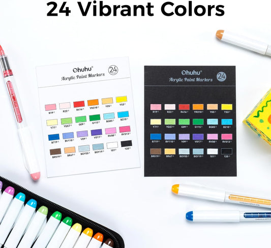 Ohuhu Bolígrafos de pintura acrílica, 24 colores: puntas de pincel de 0.059 in, marcadores acrílicos, marcadores de pintura de alta opacidad, impermeables, resistentes a la luz para pintura de rocas