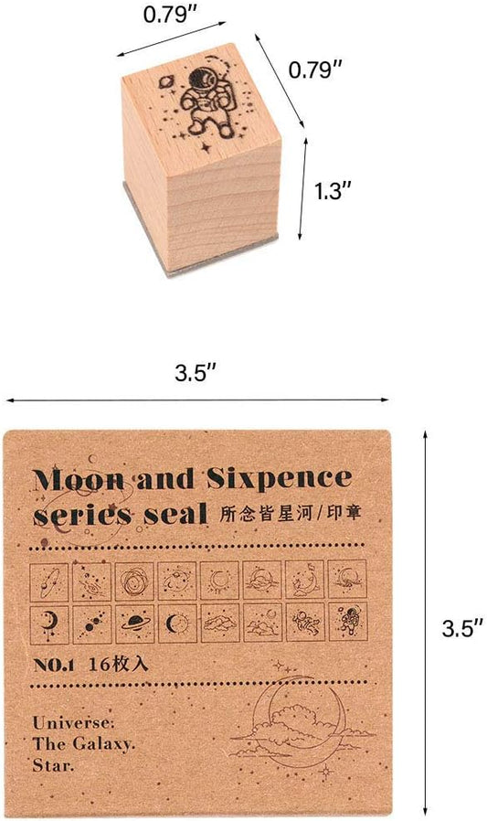 16 sellos de goma de madera vintage, juego de sellos de goma decorativos de universo y galaxia, sellos de goma montados en madera para artes y manualidades, diarios, fabricación de tarjetas