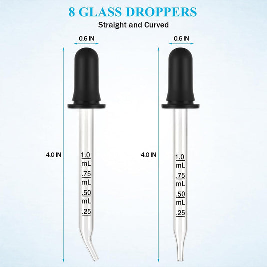 1 Cuentagotas de pipeta de vidrio, cuentagotas con puntas dobladas o rectas, goteros de 0.3 fl oz para aceites esenciales, laboratorio, cuidado de la salud