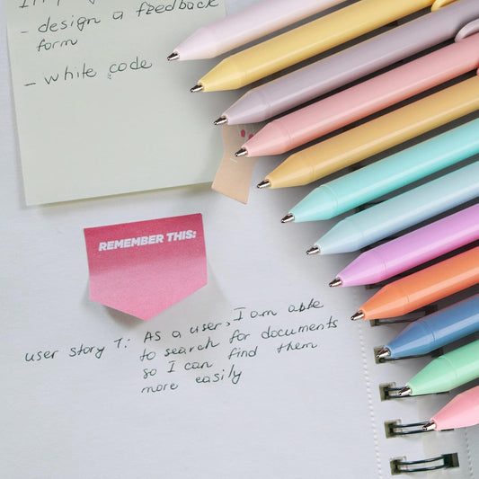 12 bolígrafos de punta media de 0.039 in, escritura cómoda, bonito diario retráctil pastel, tinta negra, punta media de 0.039 pulgadas