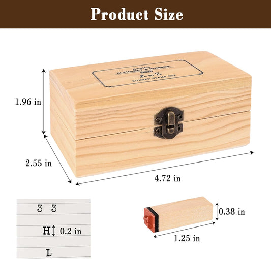 36 sellos de goma de madera, mini sellos de letras del alfabeto para tarjetas de manualidades y álbumes de fotos, juego de sellos de tinta para manualidades con caja de madera, color negro