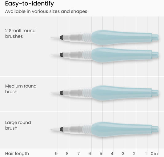 ARTEZA Cepillo de agua, juego de 4, puntas de cerdas de nailon suave surtidas, cepillo de agua autodhumedecente, bolígrafo de agua recargable