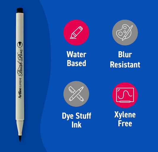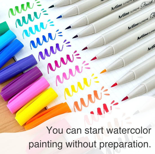 Artline Supreme Brush Pens - marcadores de pincel de color a base de agua con punta flexible, perfectos para dibujo y caligrafía, multicolor - 1 unidad, paquete de 12