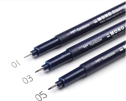 Tombow Bolígrafo de dibujo MONO, paquete de 3. Crea dibujos precisos y detallados con tres tamaños de punta: 01, 03 y 05