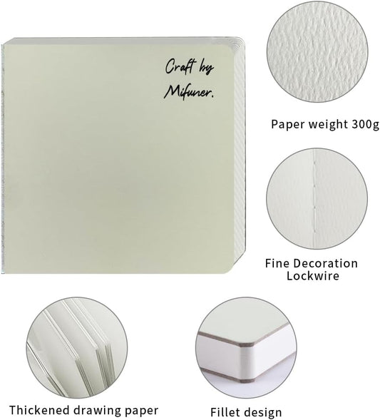 Cuaderno de bocetos de acuarela de 5.5 x 5.5 pulgadas, cuaderno cuadrado de acuarela, prensa en frío, 140 libras, papel de algodón de 10.58 oz/m², 48 páginas, cuadernos, blocs de papel