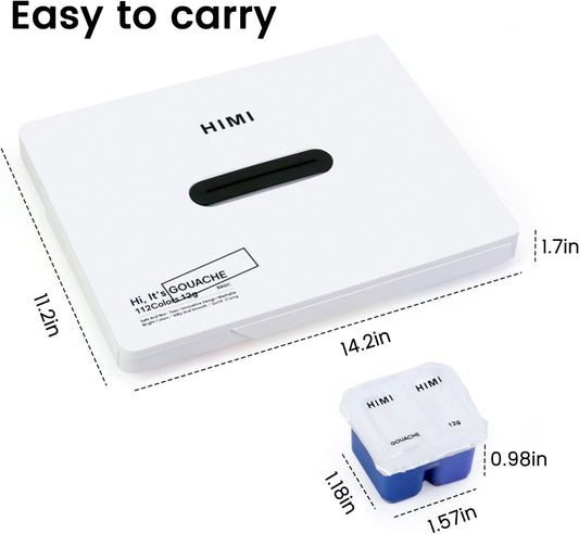 HIMI - Juego de pintura gouache, 112 colores x 0.42 oz, diseño de taza de gelatina doble en un estuche de transporte, pintura gouache no tóxica para lienzo y papel, perfecto para artistas,