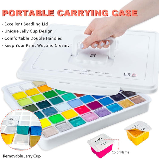 HIMI Juego de pintura Gouache, 56 colores x 1.06 oz (30 g), diseño único de taza de gelatina en un estuche de transporte, perfecto para artistas, suministros de arte opacos de gouache
