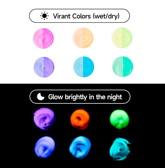 HIMI Juego de pintura de gelatina gouache que brilla en la oscuridad, 6 colores de 0.8 fl oz