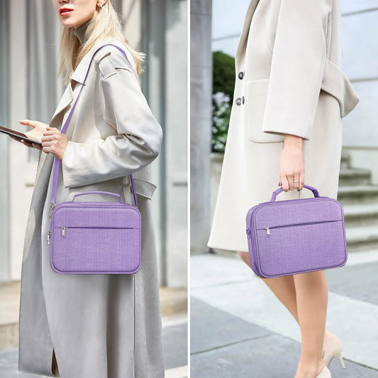 Funda grande con correa para el hombro, estuche para libros, con ranuras para bolígrafos y bolsillo con cremallera - color lila