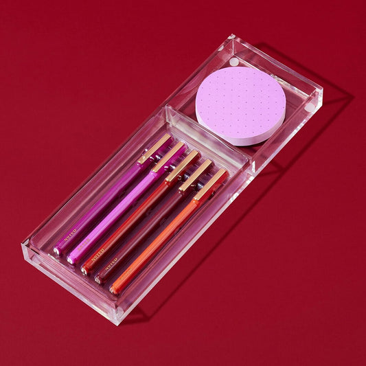 Noted by Post-it - Caja de regalo de notas impresas, colores cálidos, incluye bandeja acrílica, 100 notas adhesivas redondas, paquete de 5 bolígrafos