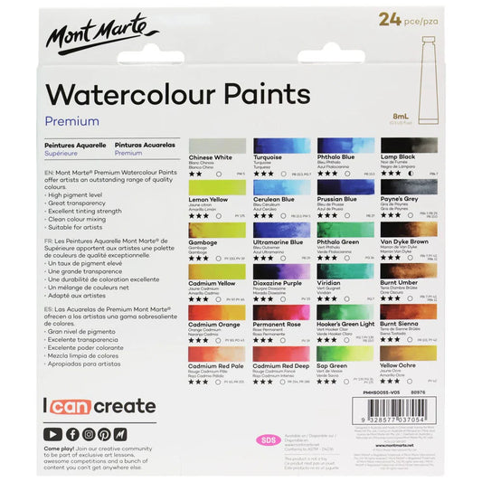 Mont Marte - Acuarelas Premium 24 piezas x 8 ml
