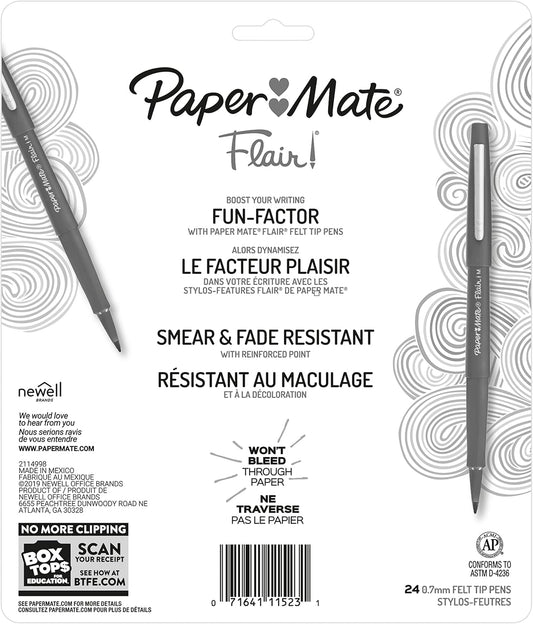 Paper Mate - Bolígrafos de punta de fieltro, punta media (0.7 mm) 24-paquete