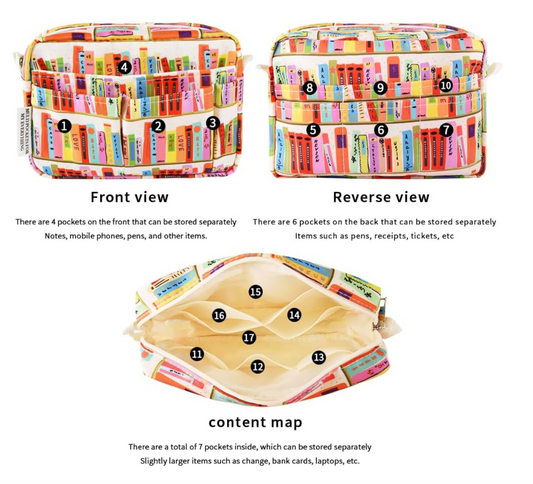 Organizador multifuncional para cartera, bolsa de viaje impermeable con cremallera, estuche de almacenamiento de suministros de diario para cuadernos, maquillaje, suministros de oficina.