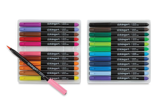 KINGART Tinta a base de agua, juego de 24 bolígrafos de pincel de colores únicos y vivos, surtido de 24 pieza