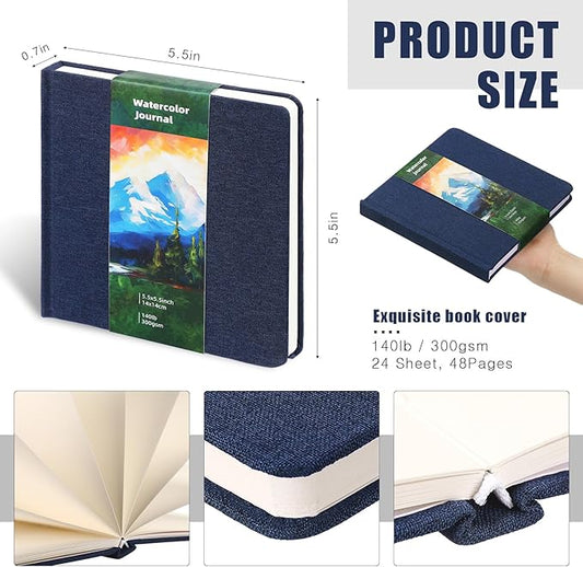 Cuaderno de bocetos de acuarela de 5.5 x 5.5 pulgadas, cuaderno cuadrado de acuarela, prensa en frío, 140 libras, papel de algodón de 10.58 oz/m², 48 páginas, cuadernos, blocs de papel