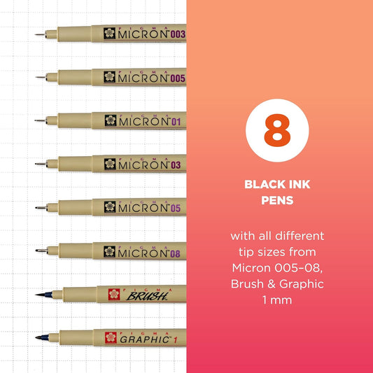 RESERVA - Sakura Pigma, juego de 8 plumas de tinta Micron en blíster
