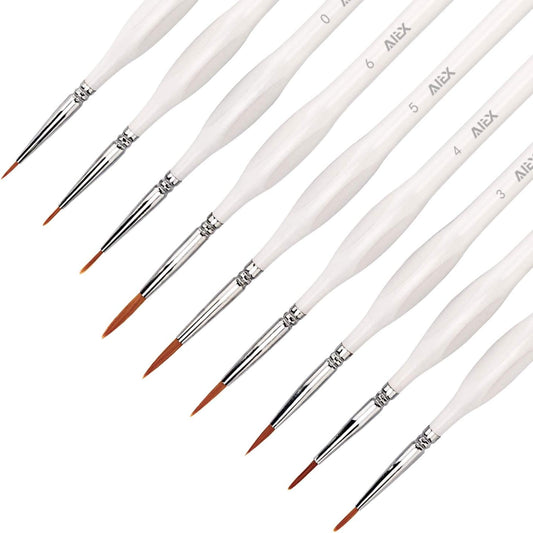 AIEX Juego de pinceles de pintura de detalles finos de 9 piezas, kit de pinceles de pintura en miniatura, juego de pinceles para acrílico, acuarela, óleo, cara, uñas, pintura de modelo a escala