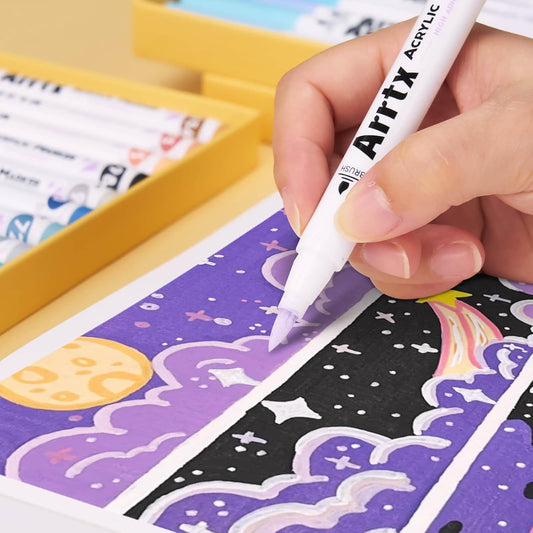 Arrtx - Marcadores acrílicos de 48 colores (110F) , punta de pincel para pintar rocas, vidrio, piedra, madera, cerámica, tela, proyectos de bricolaje y suministros de arte