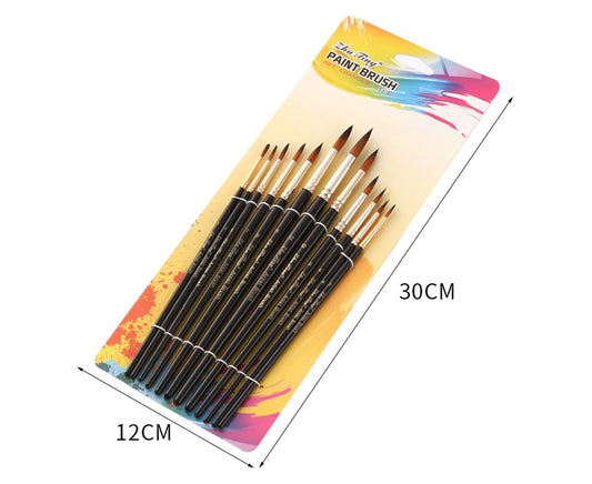 ZHU TING 12 PZ / Set Pinceles de acuarela de cabello de nailon Pincel de gouache pintado para niños (puntas de varilla negra)