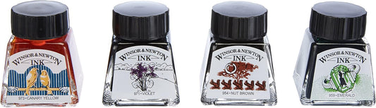 Winsor & Newton Juego de 4 tintas de dibujo de colección, tonos ricos