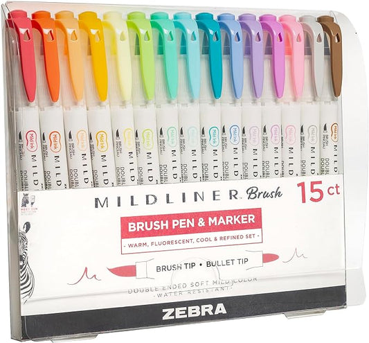 Zebra Pen Mildliner Juego de marcadores resaltadores de doble punta, punto grueso y fino, no se corren, colores de tinta neutros y suaves de surtidos, paquete de 10, número de modelo: 78701