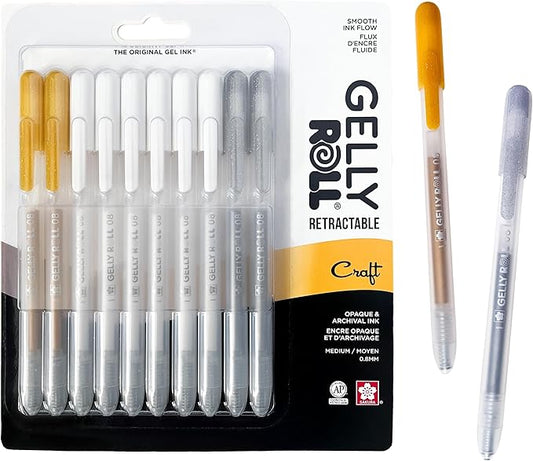 SAKURA Gelly Roll - Bolígrafos de gel retráctiles de colores, juego de colores opacos, bolígrafo de tinta de punta media para diario, arte o dibujo, bolígrafos de gel de colores con tinta blanca,