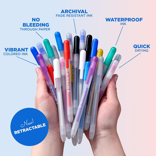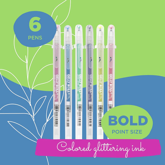 SAKURA Gelly Roll - Bolígrafos de gel retráctiles de colores, juego de colores brillantes, bolígrafo de tinta de punta media para diario, arte o dibujo, bolígrafos de gel de colores con purpurina.