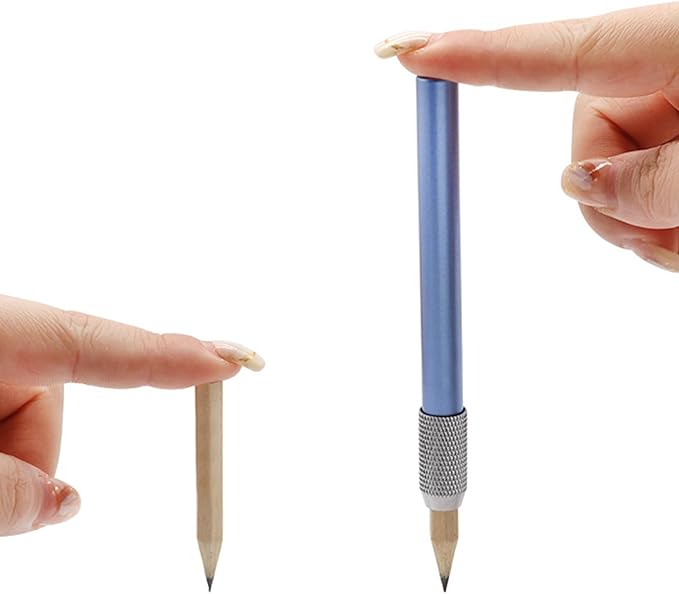 - El extensor de lápiz sostiene tu lápiz y prolonga la vida útil de tus lápices demasiado cortos. Hecho de metal, el portalápices es muy ligero, es normal cuando lo sostienes.