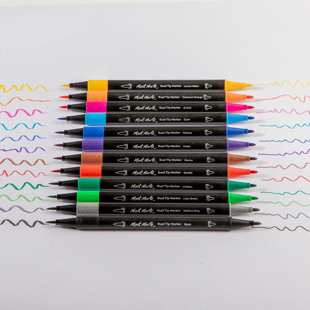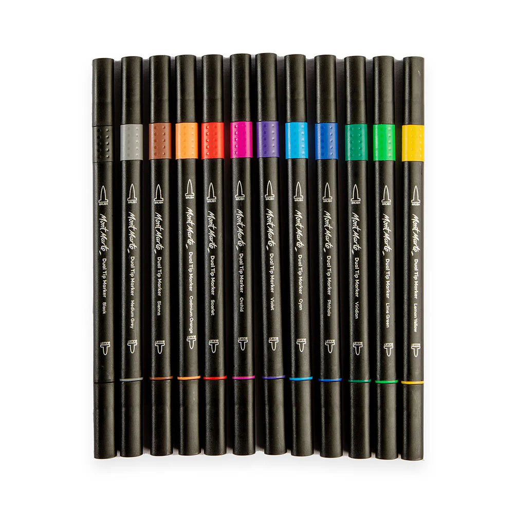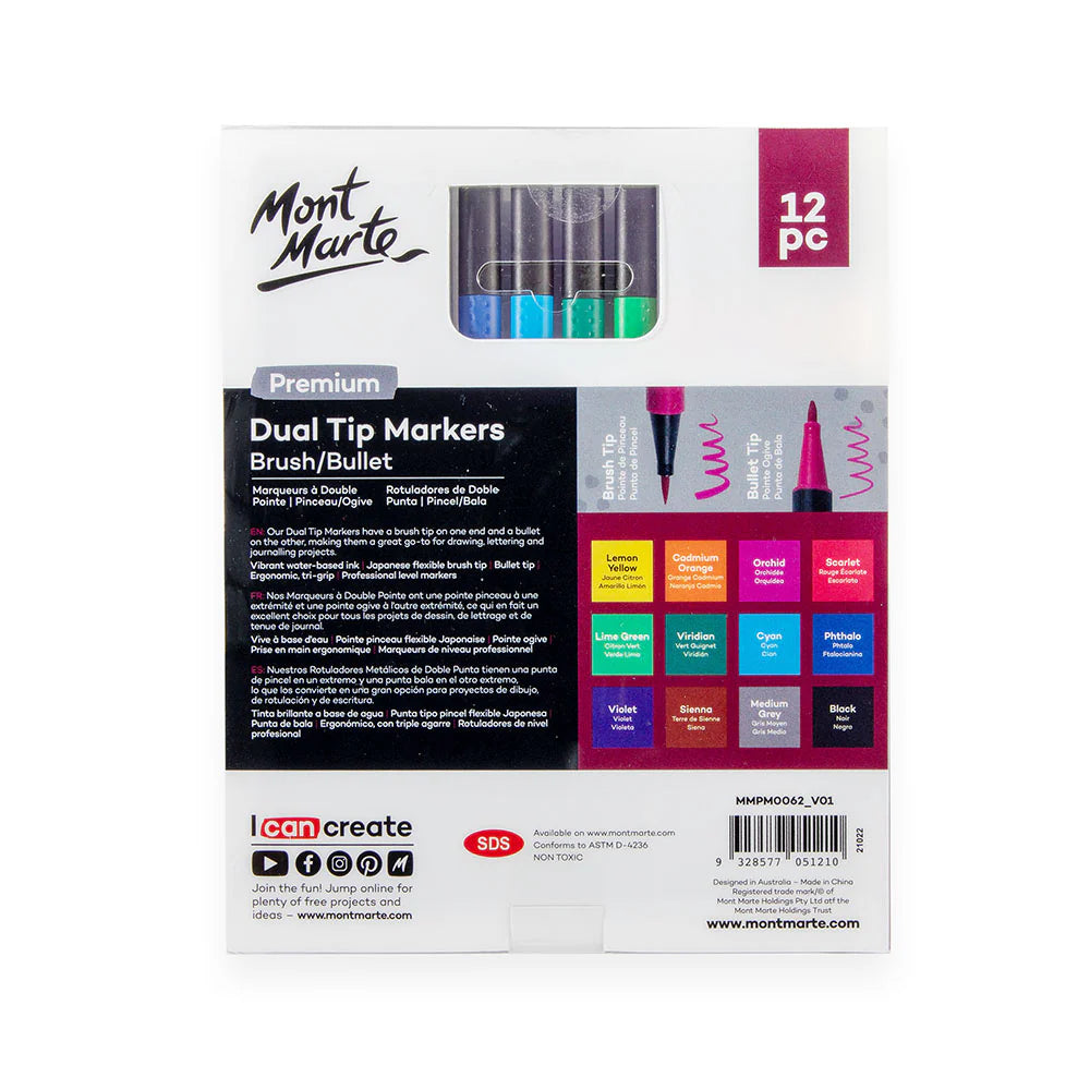 Mont Marte - Marcadores de doble punta pincel/bala premium 12 piezas