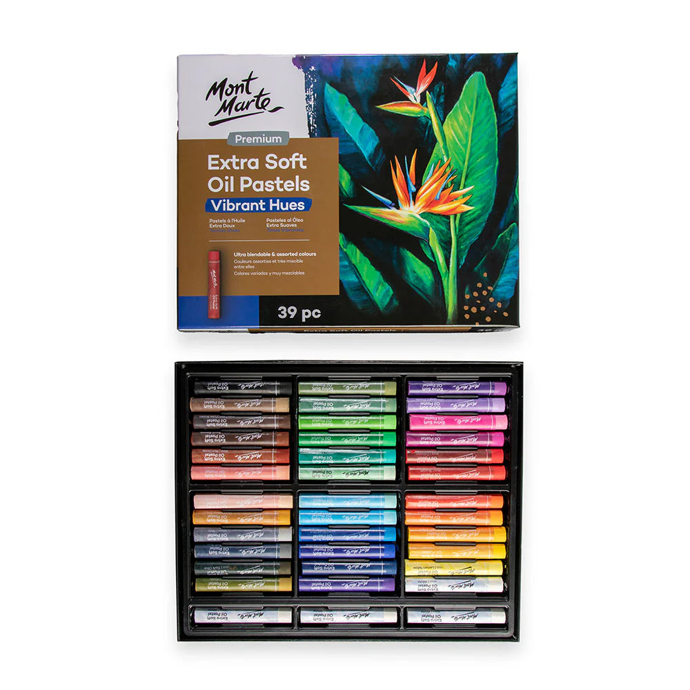 Mont Marte - Pasteles al óleo extra suaves en tonos vibrantes premium, 39 piezas