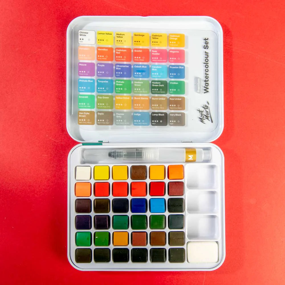Mont Marte Set de acuarela en lata premium de 39 piezas
